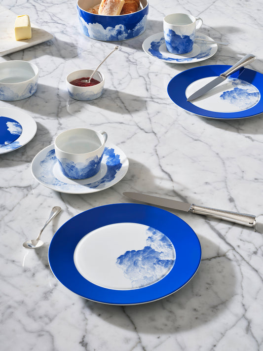 The French designer Dimitri Rybaltchenko created a poetic decor for the porcelain manufactory, inviting one to daydream together. The vibrant blue decor RÊVERIE for the AURÉOLE dinnerware collection depicts clouds in which various animals can be discovered – a tribute to warm summer days spent gazing at the sky, transforming fleeting cloud formations into fantastical creatures. RÊVERIE is an elegant design full of lightness and magic, inviting daydreams and inspiring captivating conversations at the table.