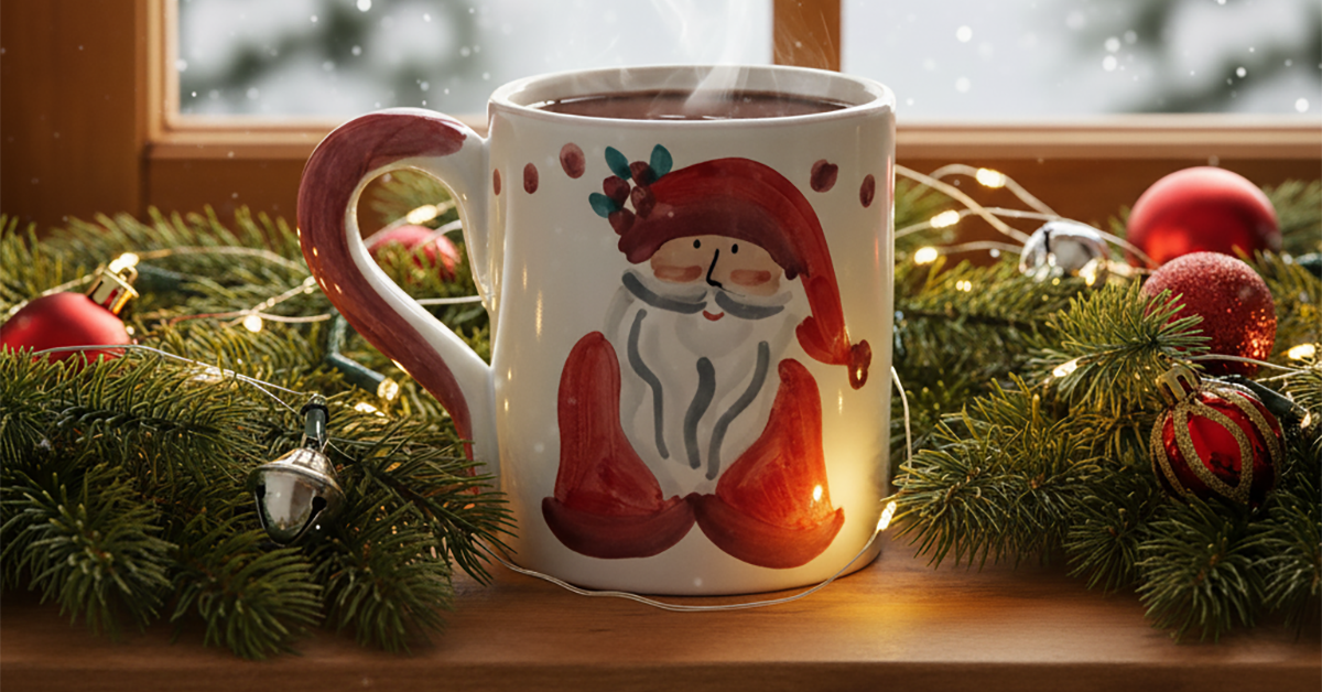 As snow gently falls, Nonna sets the Natale table, each hand-painted piece telling a story of love and tradition.