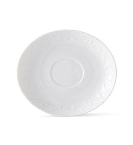 Elevate your dining experience with this stunning collection of floral embossed porcelain featuring an all-white collection. Whether paired with ornate table settings or for a more refined elegance, this dinnerware adds a touch of sophistication to any occasion.