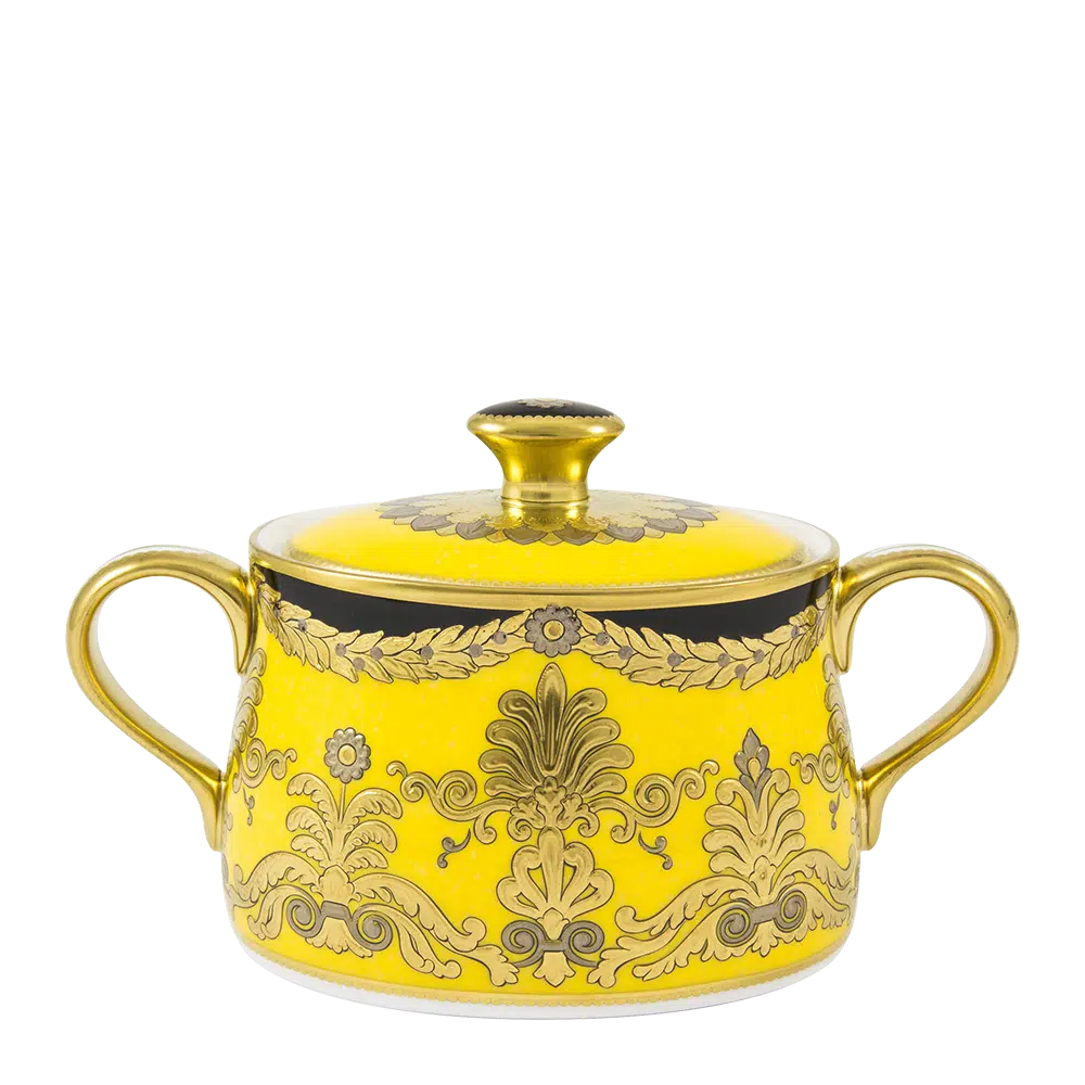 Elevate your dining experience with Royal Crown Derby's Amber Palace. Featuring a stunning yellow and black intricate pattern with 22K gold detail, this high-end luxury tableware will have you feeling like royalty. Impress your guests with a beautiful tablescape and stunning serving pieces.