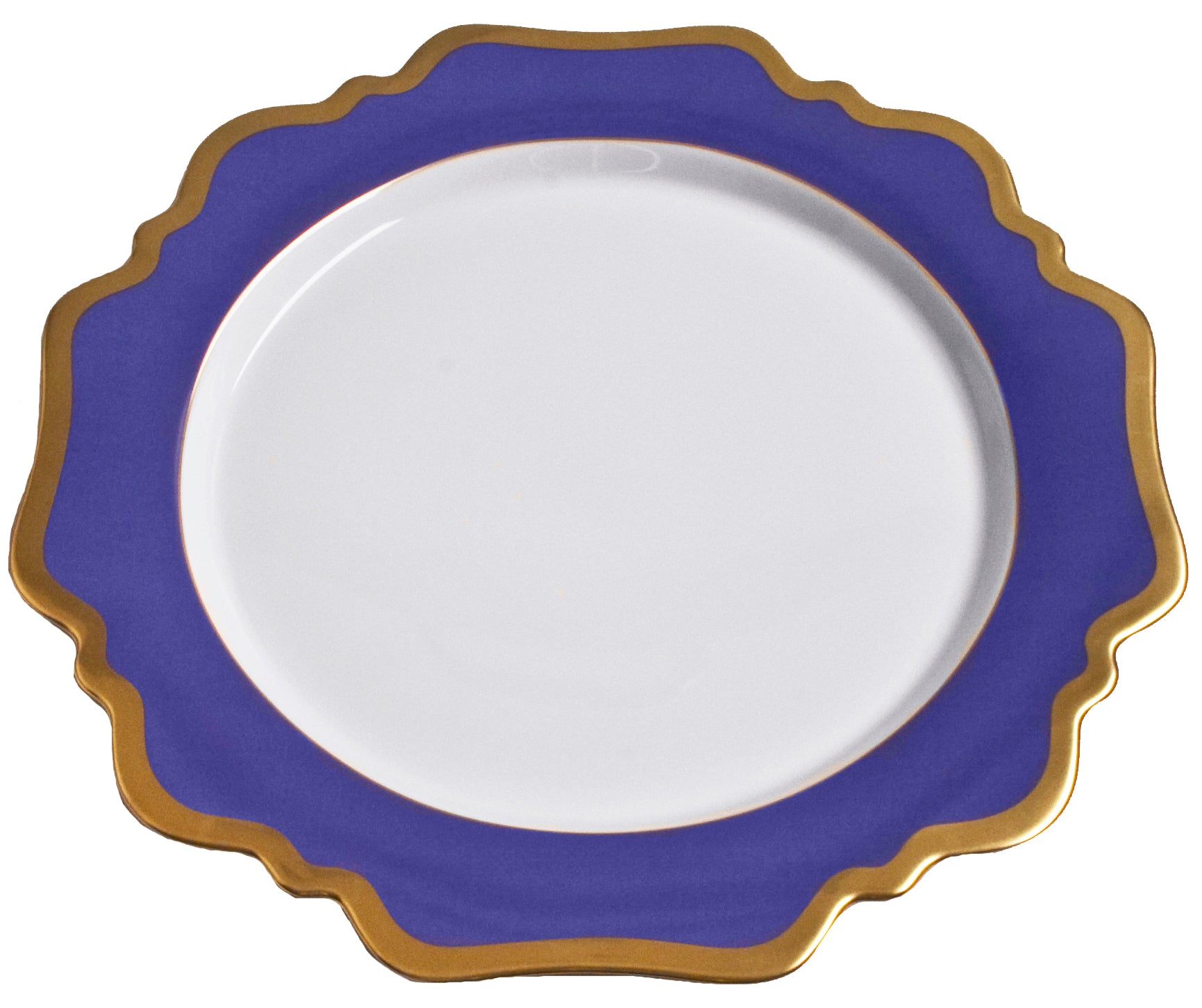 Add a touch of elegance to your dining experience with Anna's Palette, antique shaped dinnerware. Crafted from porcelain in a stunning indigo blue hue, this dinnerware features a delicate scalloped gold edge for a sophisticated touch. Mix and match to create a unique and stylish table setting.