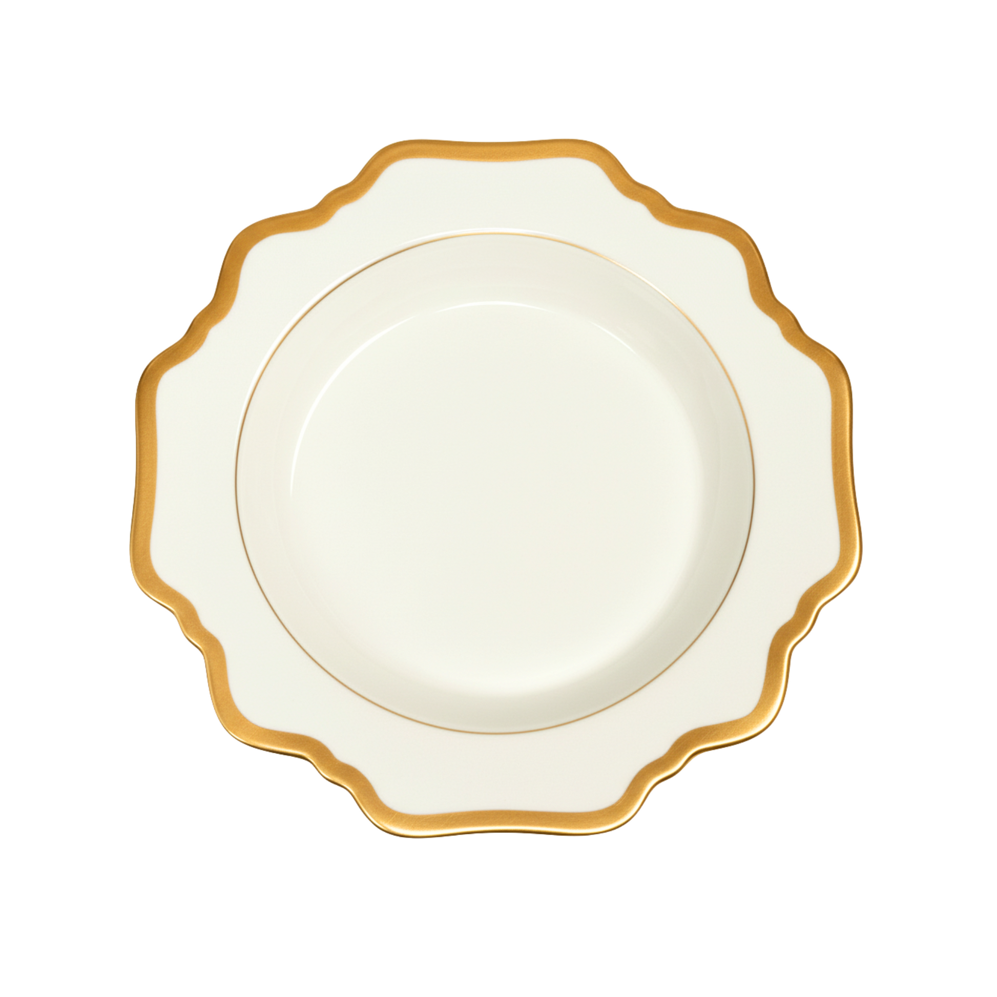 Add a touch of elegance to your dining experience with Anna's Palette, antique shaped dinnerware. Crafted from porcelain in stunning shapes, this dinnerware features a delicate scalloped gold edge for a sophisticated touch. Mix and match with other antique shaped dinnerware from Anna's Palette to create a unique and stylish table setting.