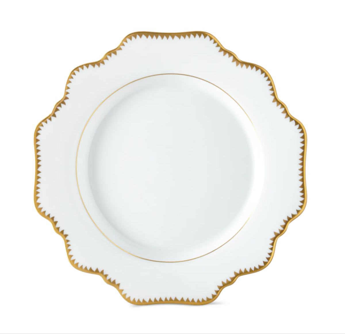 Expertly crafted with Anna's classic antique shape, this dinnerware brings a touch of elegance to any dining table. The unique sharp tooth edge design and gold border adds charm to each piece, all made from durable porcelain for long-lasting use.