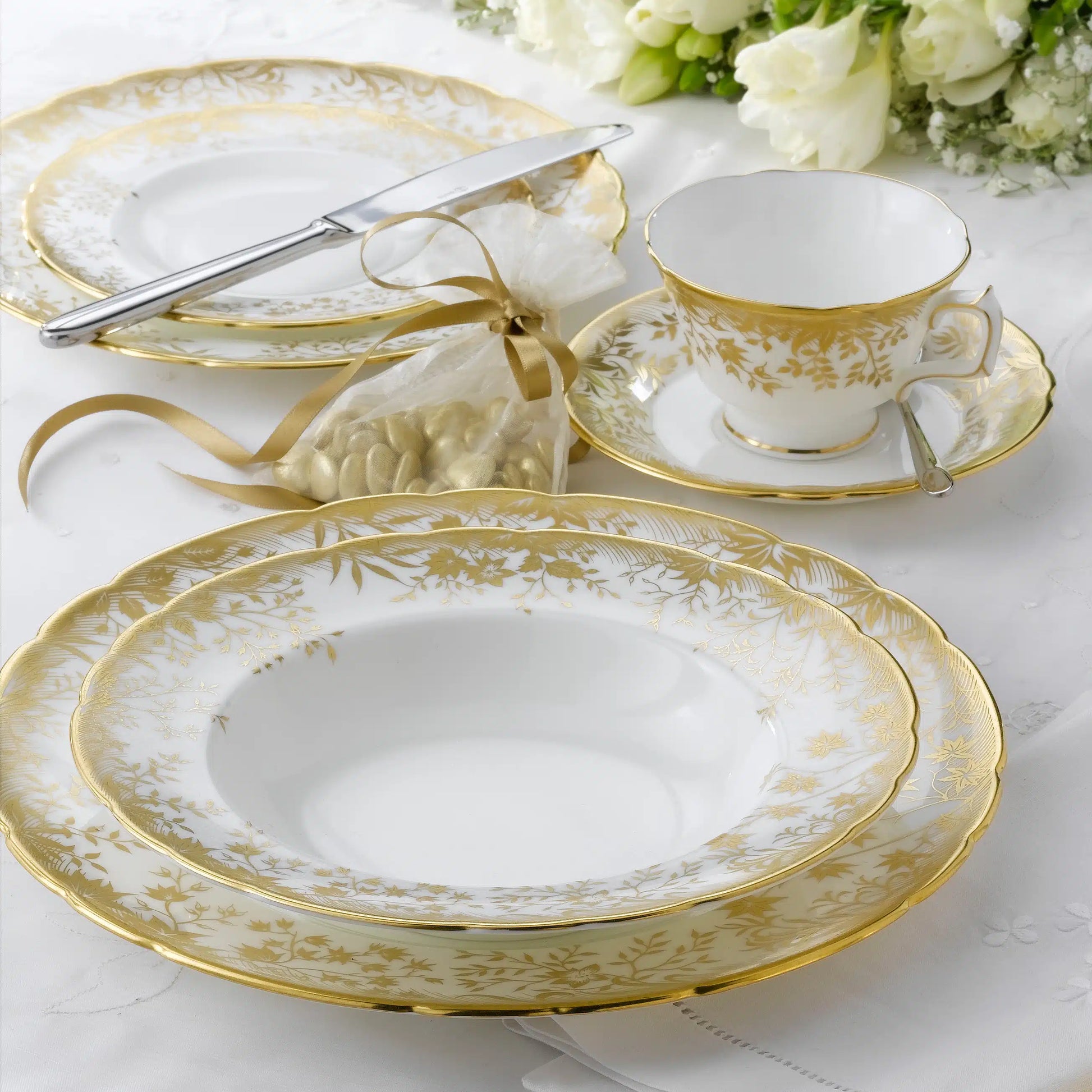 Elevate your tea and coffee experience with Arborteum. Crafted from fine bone china, each piece features a 22 carat gold border or design adorned with whimsical gold leaves. Enjoy your beverage in style and add a touch of luxury to your table. Cheers to indulgence.