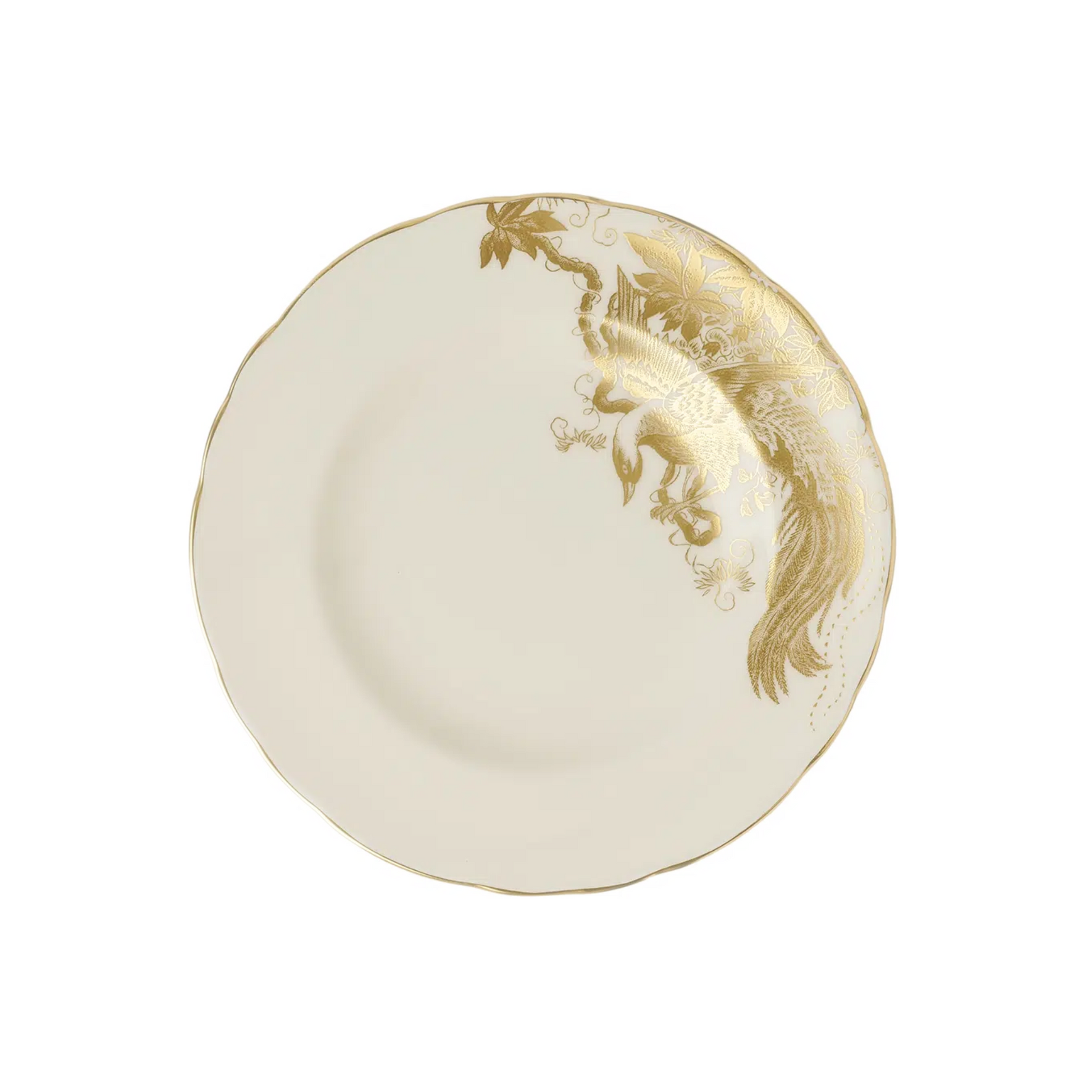 A simpler take on the best-selling Gold Aves pattern. Made of 22 carat gold, this dinnerware boasts a touch of elegance and versatility. Perfect for mixing and matching with any Royal Crown Derby Gold Aves patterns. Elevate your dining experience with this whimsical pattern adorned with birds and blooms.