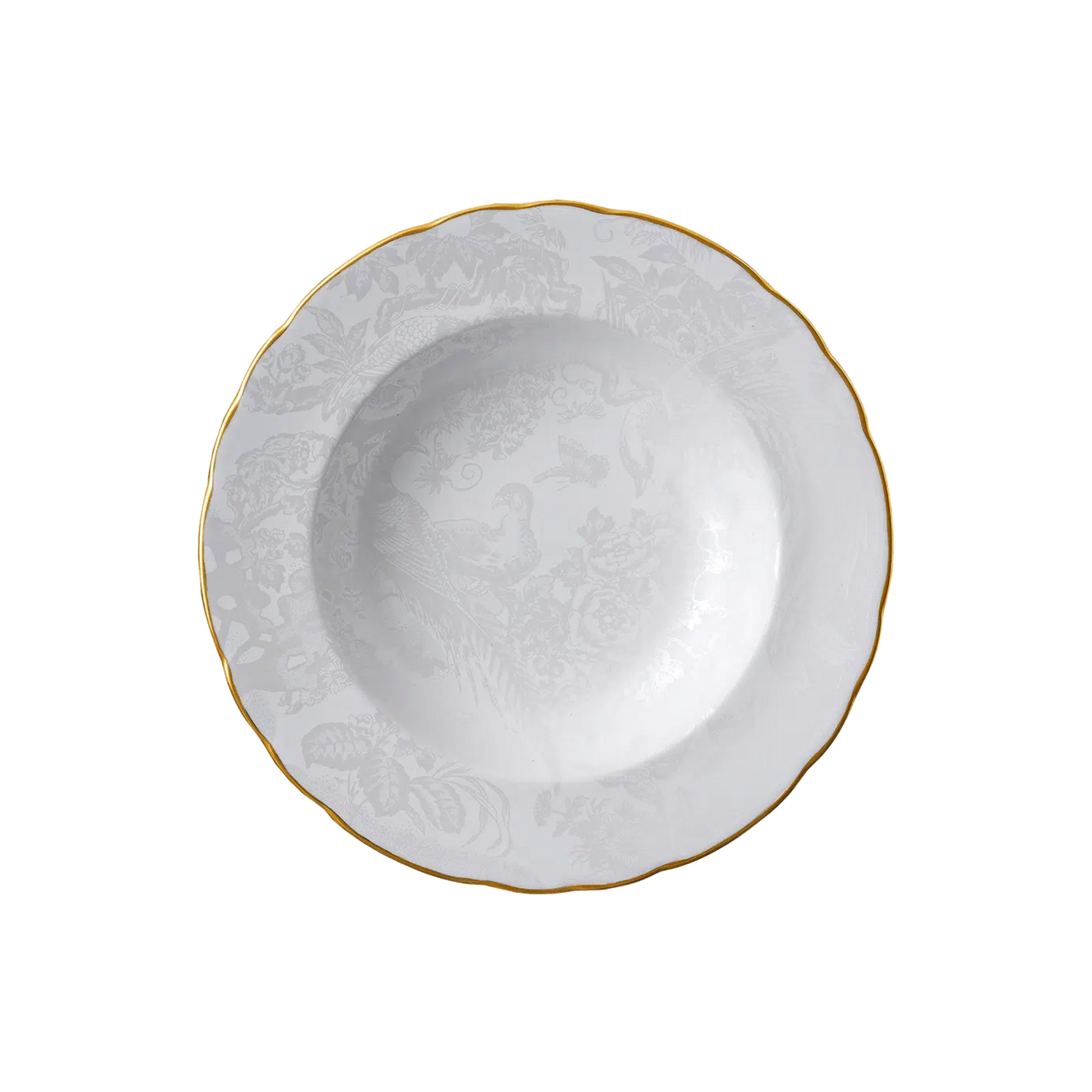 Expertly crafted and designed, Royal Crown Derby's Aves Pearl is a best-selling design that looks stunning with any table setting. Made from premium white fine bone china, the whimsical pattern features intricate scalloped edges and a charming pearl design, adorned with delightful birds and blooms, adding a touch of elegance to your dining experience.