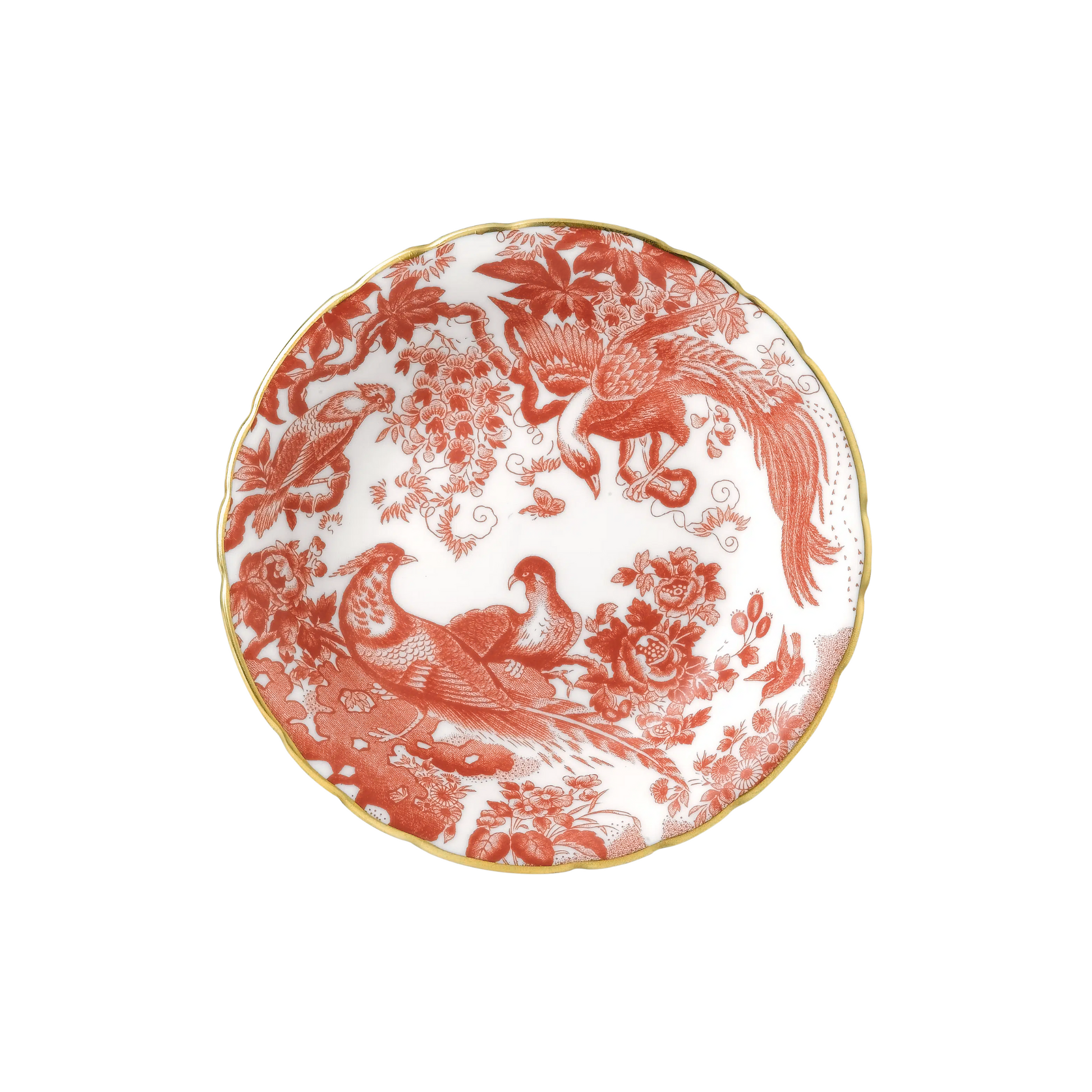 Introducing Aves Red - the perfect combination of traditional and whimsical. This most popular pattern features delightful birds and blooms, accented with a scalloped gold rim. Embrace bold, beautiful design with this pattern.
