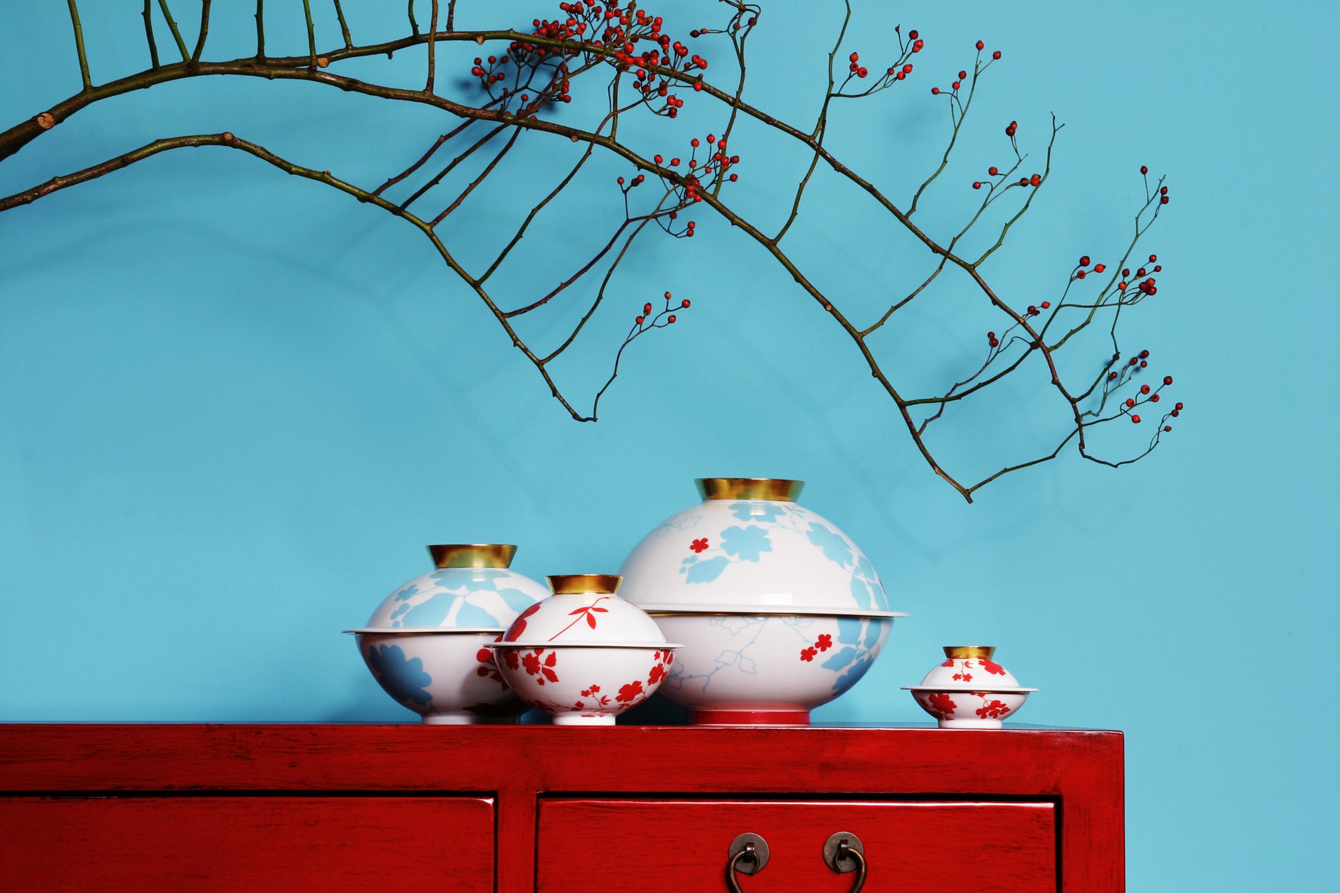 Exclusively and elaborately hand-crafted and decorated: sparkling colors and hand-gilded motifs. EMPEROR'S GARDEN cites the magic of opulent Chinese porcelain - and yet remains independent in its interpretation.