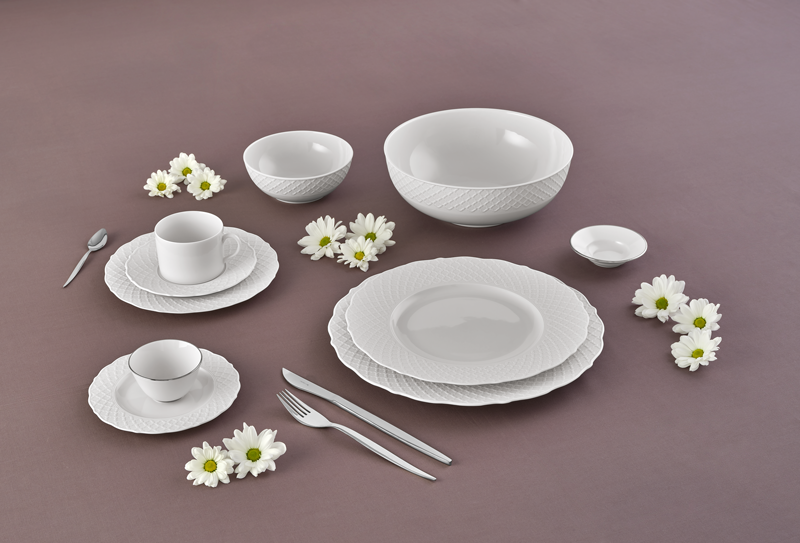 Elevate your dining experience with the all white Empire collection from designer Anna Weatherley. This porcelain dinnerware has a delicately waved rim for an elegant touch. Add beauty, texture and style to your table setting and sipping experience.