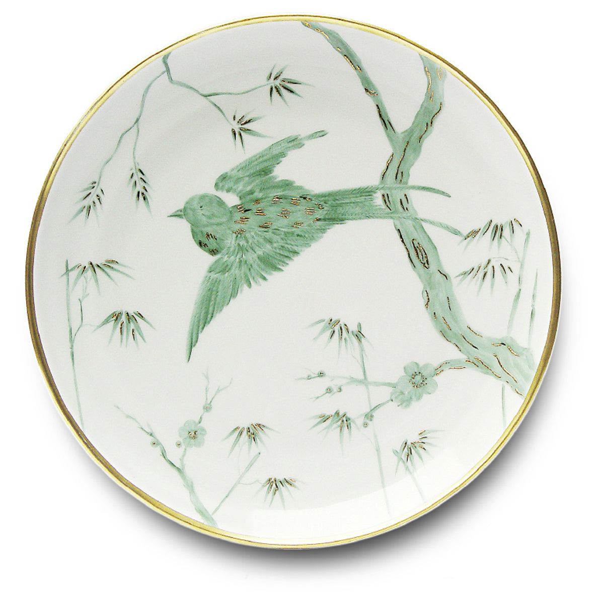 Limoges porcelain - hand painted. Birds, leaves and bamboo pattern.