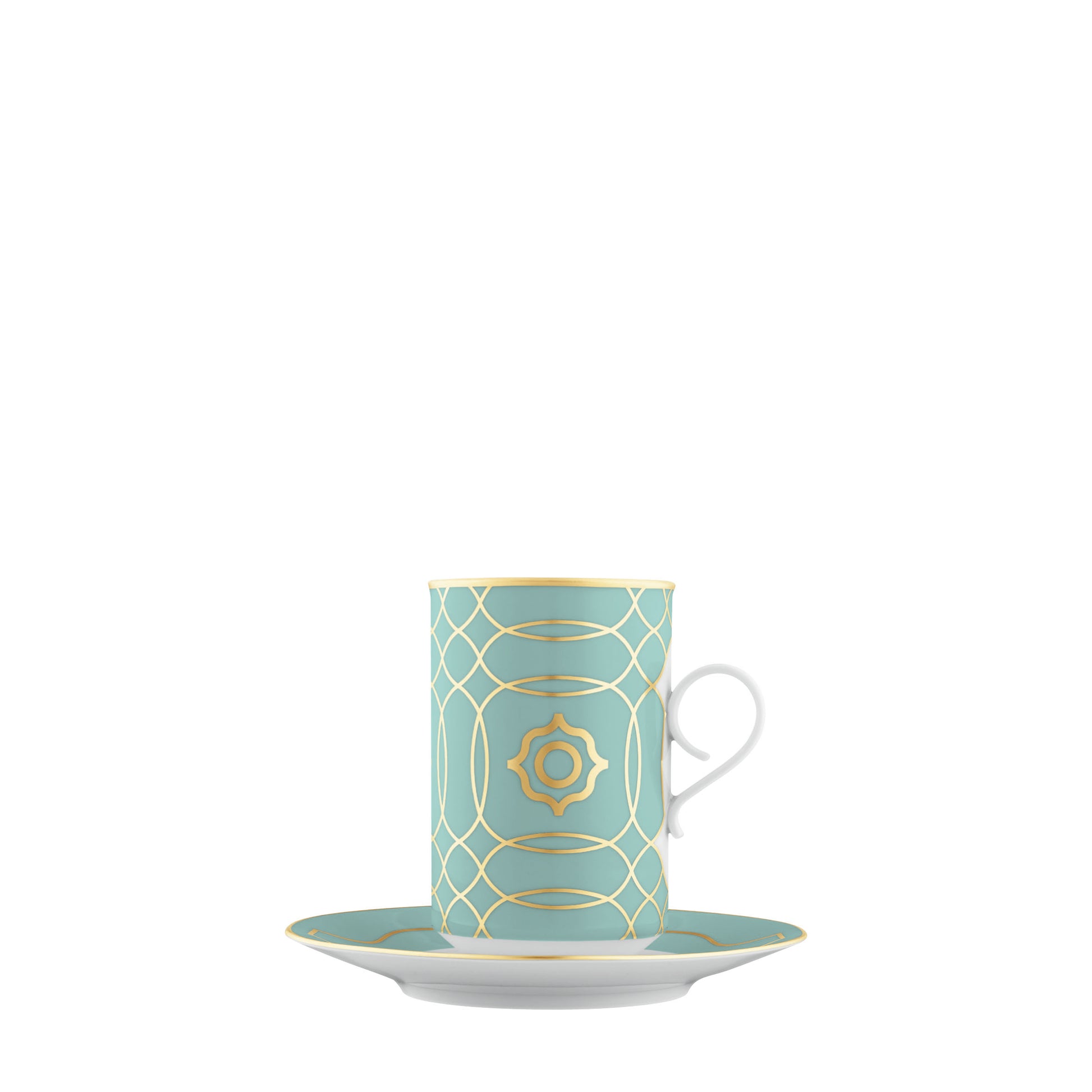 The ESTE decor on the CARLO form is artistic and elegant. It is created by luxurious gold tones, combined with subtle green nuances and the unique effect of the ornaments: on the laid table, the pattern of the FÜRSTENBERG porcelain is reminiscent of artistic mosaics.