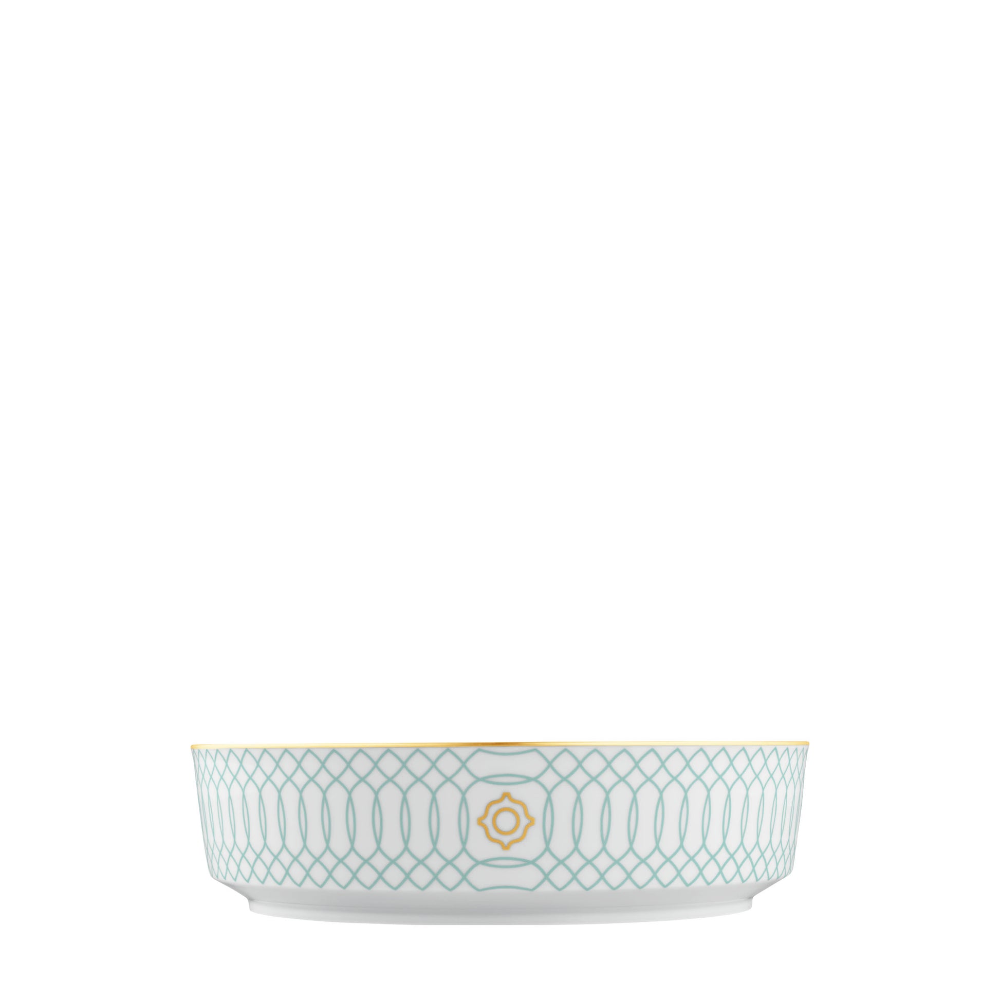 The ESTE decor on the CARLO form is artistic and elegant. It is created by luxurious gold tones, combined with subtle green nuances and the unique effect of the ornaments: on the laid table, the pattern of the FÜRSTENBERG porcelain is reminiscent of artistic mosaics.