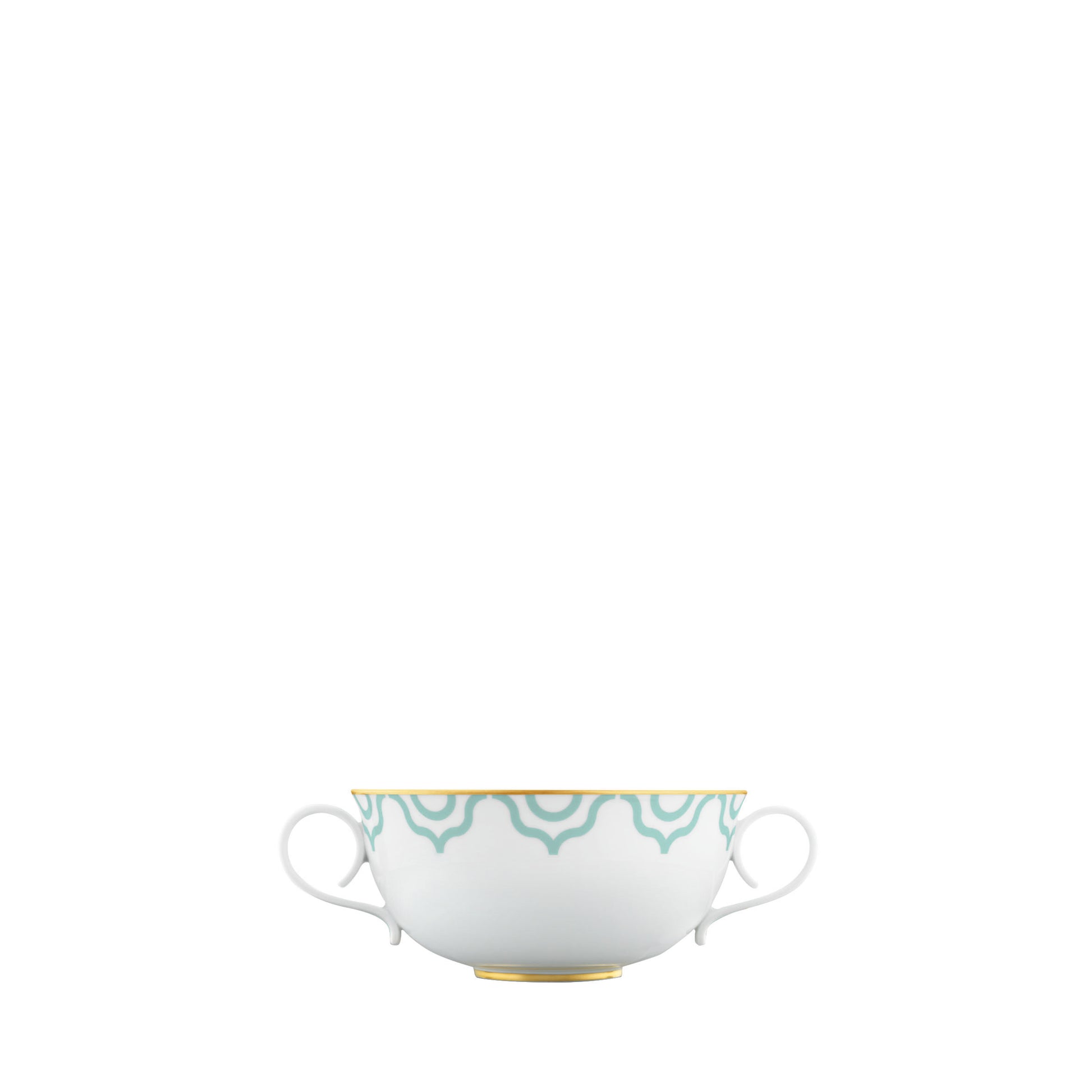 The ESTE decor on the CARLO form is artistic and elegant. It is created by luxurious gold tones, combined with subtle green nuances and the unique effect of the ornaments: on the laid table, the pattern of the FÜRSTENBERG porcelain is reminiscent of artistic mosaics.