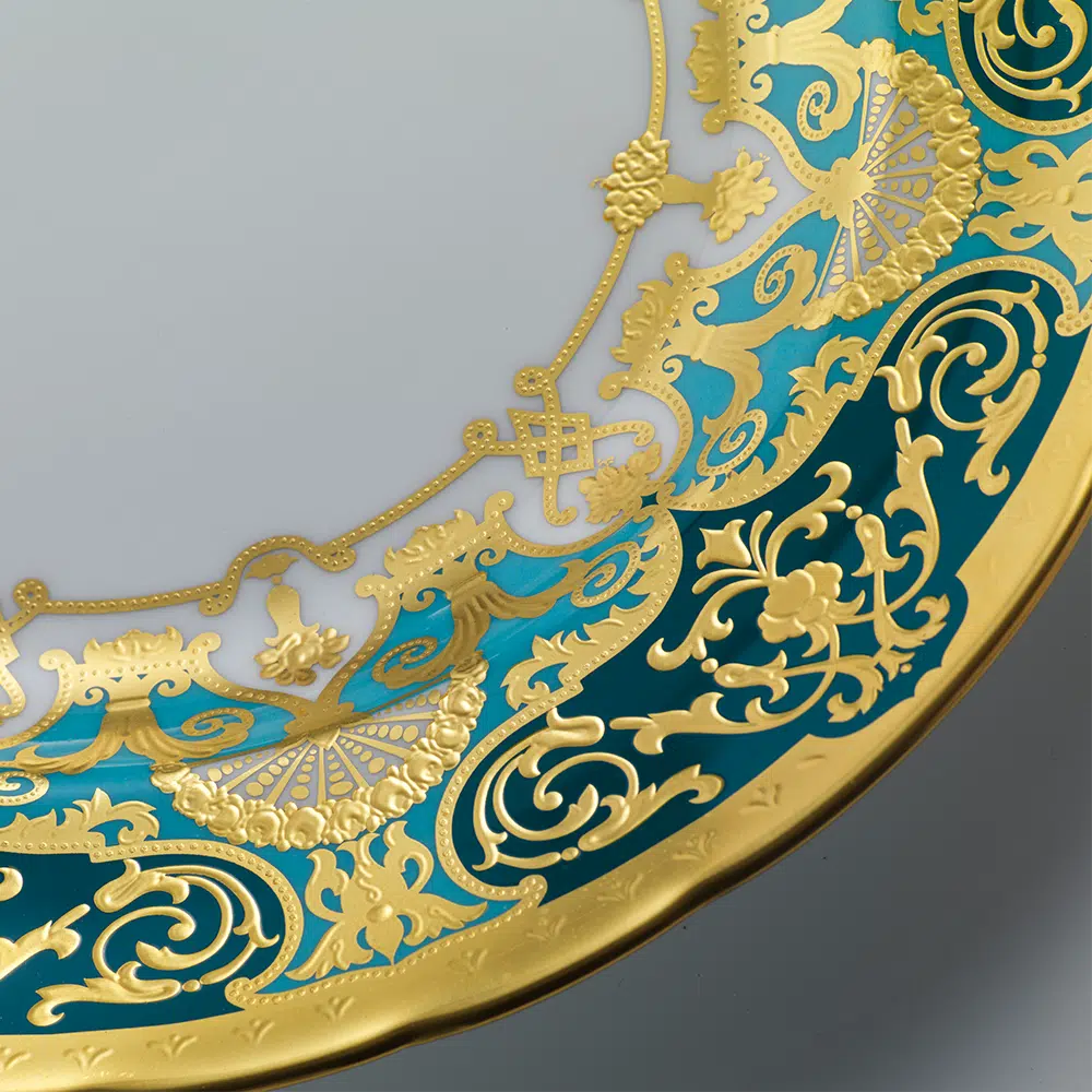 In Royal Crown Derby's long history, there has been a rich heritage of exquisite tableware. This luxurious and lavish tableware is carefully hand applied with 22K gold on a choice of three background colors. Fired up to eight times, the true craftsmanship is showcased.