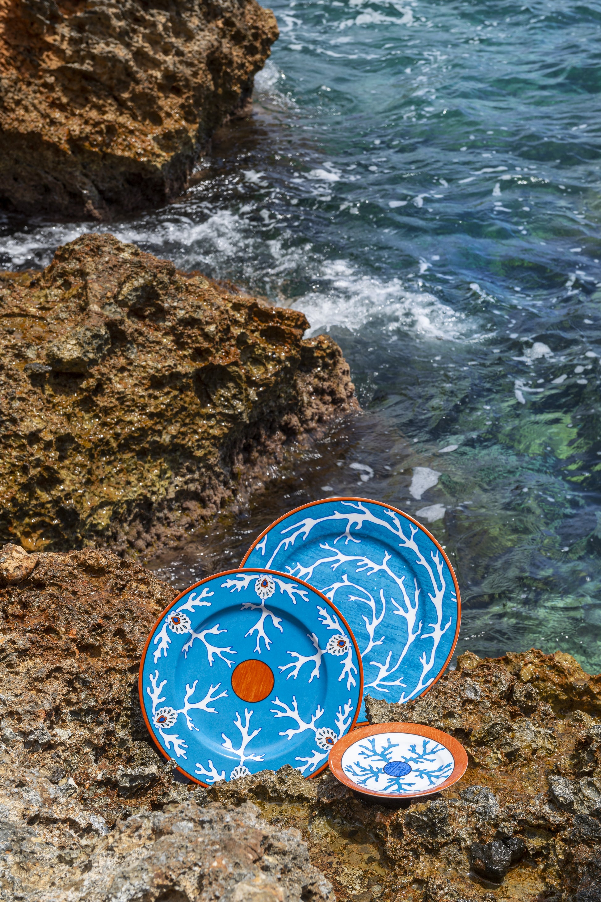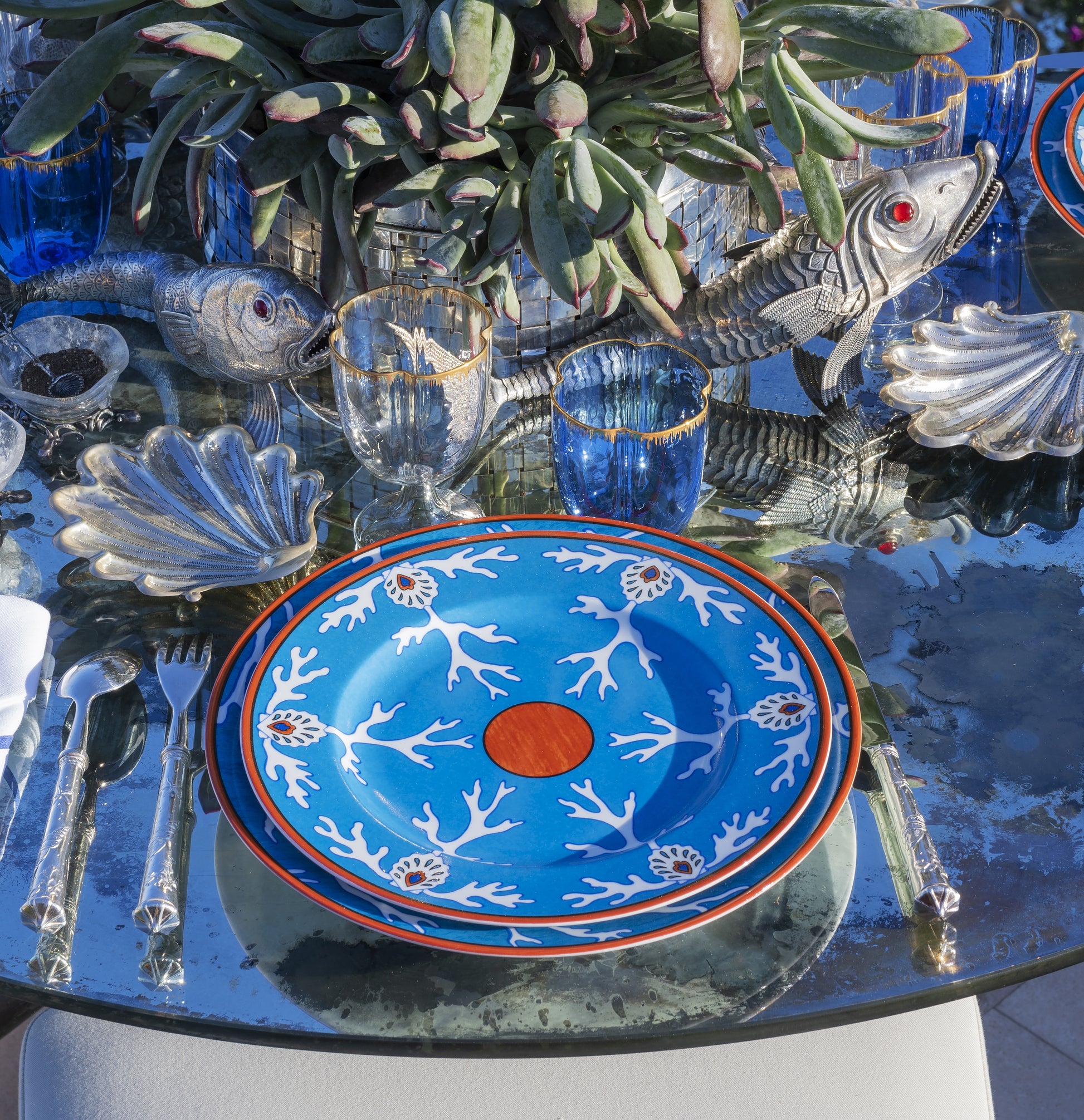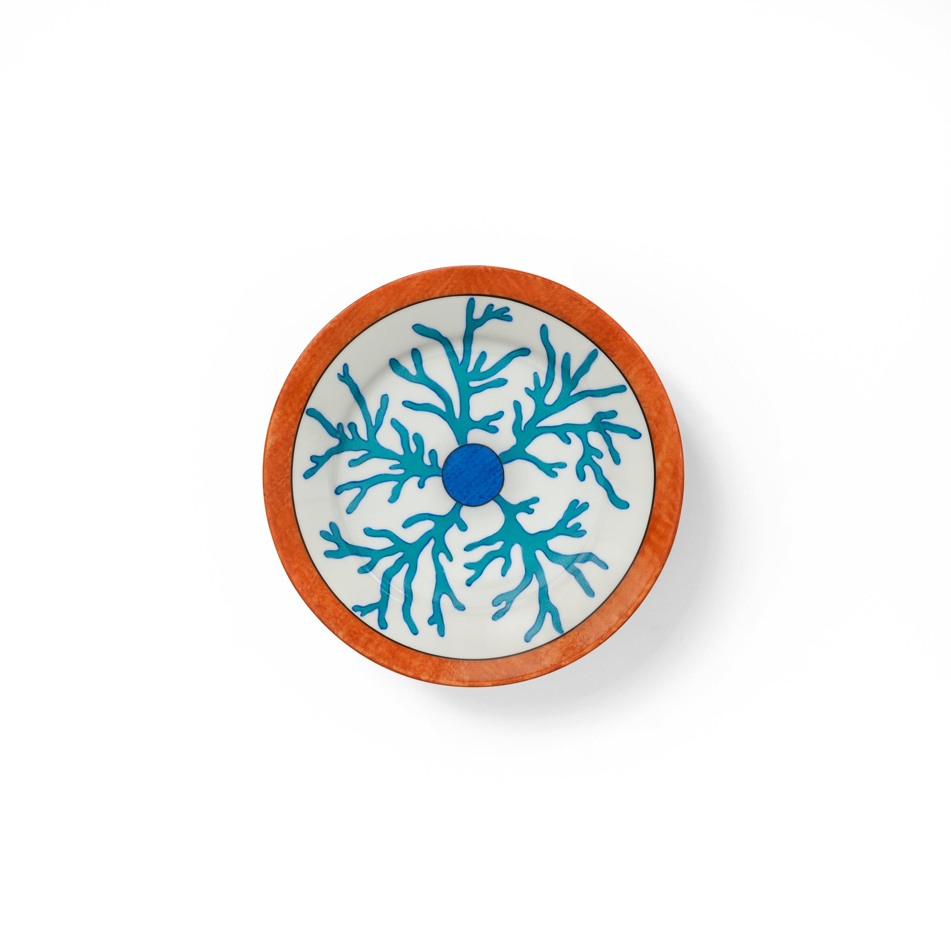 Limoges porcelain - chromolithography. Coral pattern. Blue, turquoise, and white