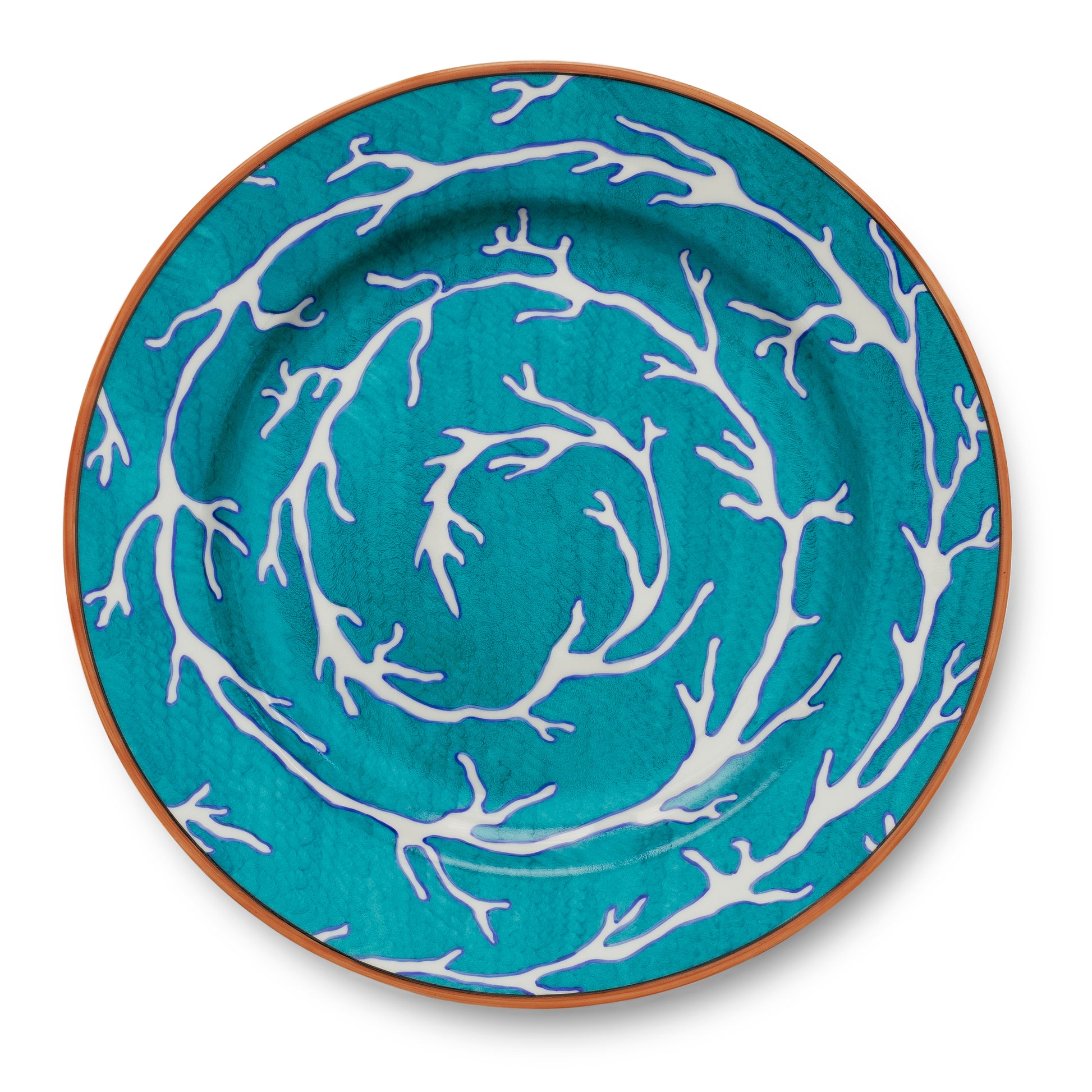 Limoges porcelain - chromolithography. Coral pattern. Blue, turquoise, and white