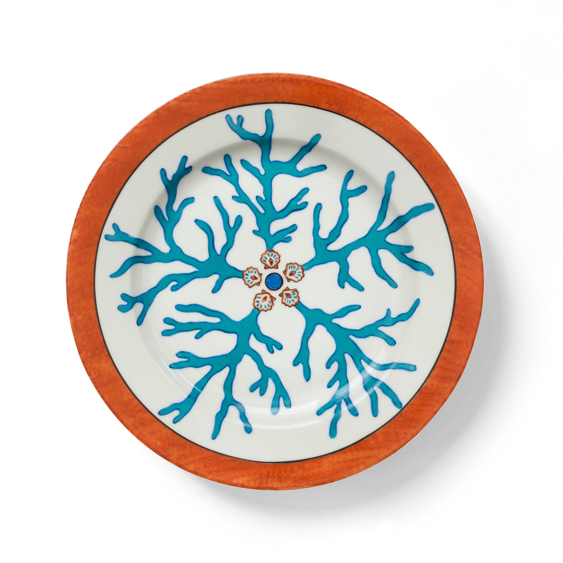 Limoges porcelain - chromolithography. Coral pattern. Blue, turquoise, and white