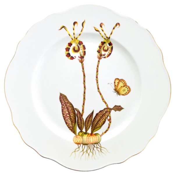 Limited edition porcelain dinner plates hand painted with gold border design. Made in Budapest.
