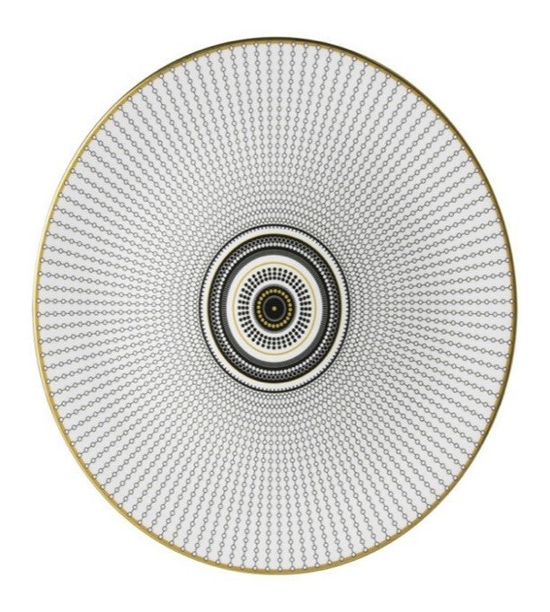 Inspired by architectural detail, mechanics, and the atomic attractions that bind materials together, the Oscillate tableware collection features a surface mesh design that compliments the fine bone china forms it adorns. Offered in a rich and warm Onyx Black the lustrous Oscillate collection is hand finished in 22K gold.