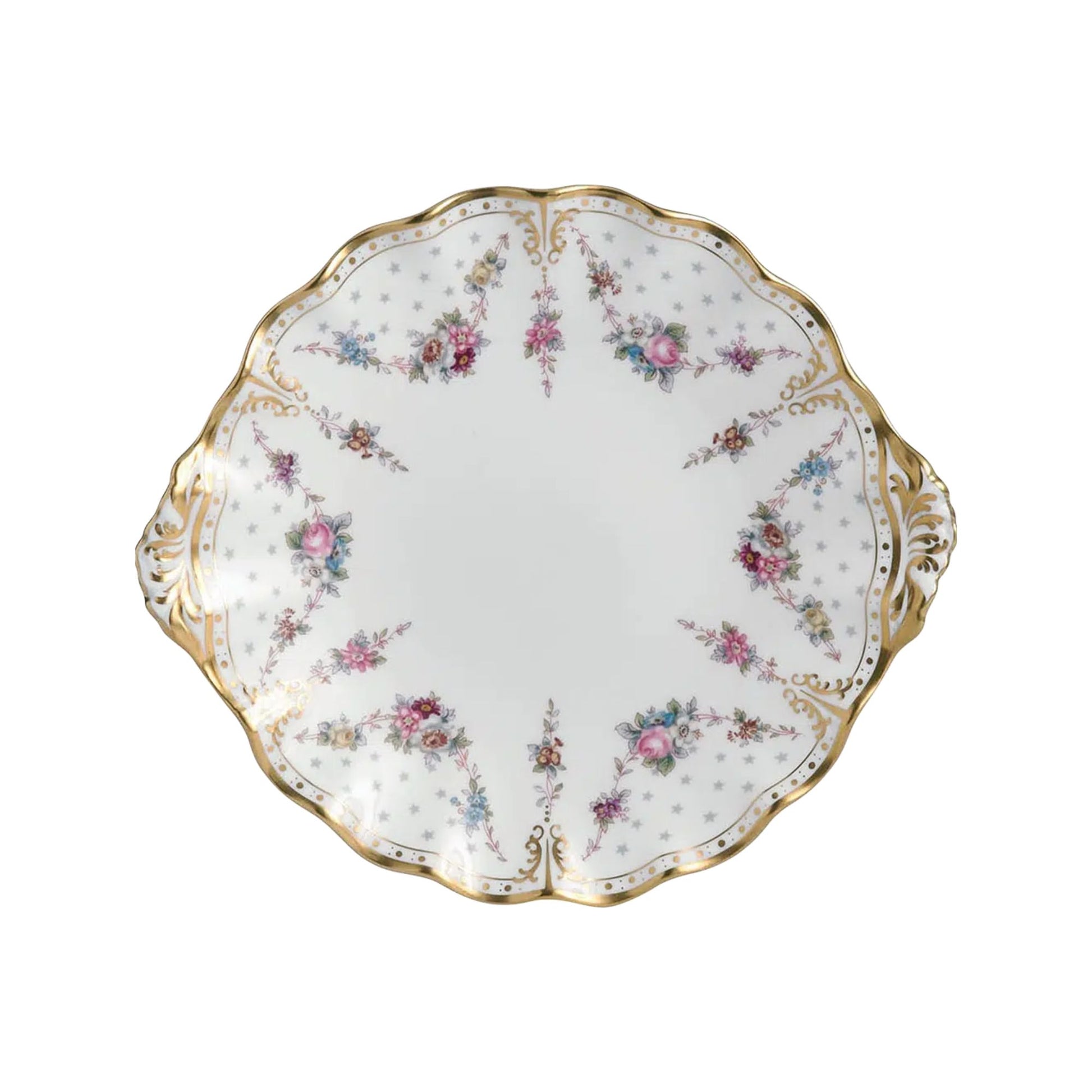 Elevate your dining experience with our Royal Antoinette dinnerware. Crafted from fine bone china, this traditional set boasts a feminine and elegant aesthetic, with a scalloped gold border adorned with delicate florals and stars. Each piece is finished with 22 carat gold, adding a touch of opulence to every meal.
