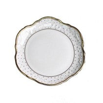 Elevate your dining experience with this stunning collection of embossed whiteware featuring Anna Weatherley's signature gold banding with tiny gold polka dots. Whether paired with ornate table settings or for a more refined elegance, this dinnerware adds a feminine touch of sophistication to any occasion.