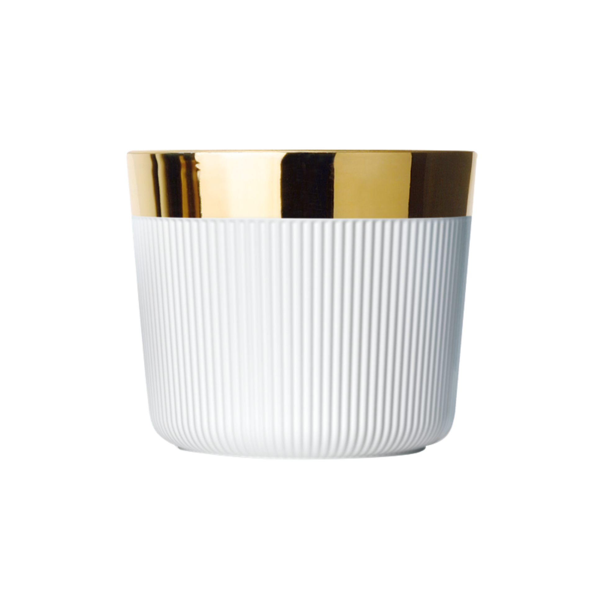 The Sip of Gold champagne tumbler from Sieger by Fürstenberg is a combination of wafer-thin porcelain and the finest precious metal. Especially when the tumblers are filled with a drink, hundreds of reflections create the impression of liquid gold that gives the collection its name.
