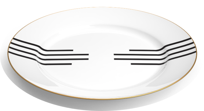 With its refined and intense design ornamented with a gold filet, the Teatro plates are ready to welcome the singular gustatory landscapes that you may invite to taste.