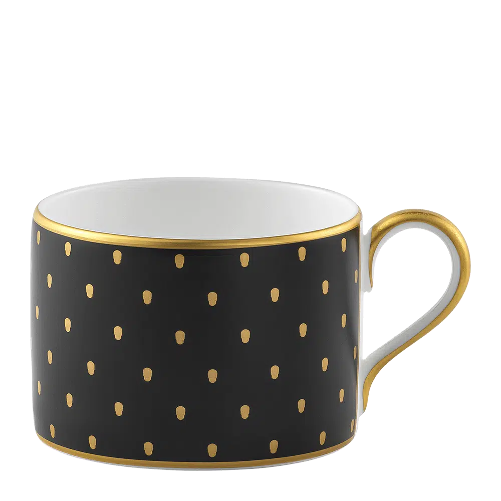 Expertly crafted from fine bone china, this pattern adds a touch of sophistication and playfulness to any beverage. Its stylish black and gold polka dot design appeals to both feminine and masculine tastes, making it the perfect choice for anyone looking to add a fun touch to their drinkware collection.