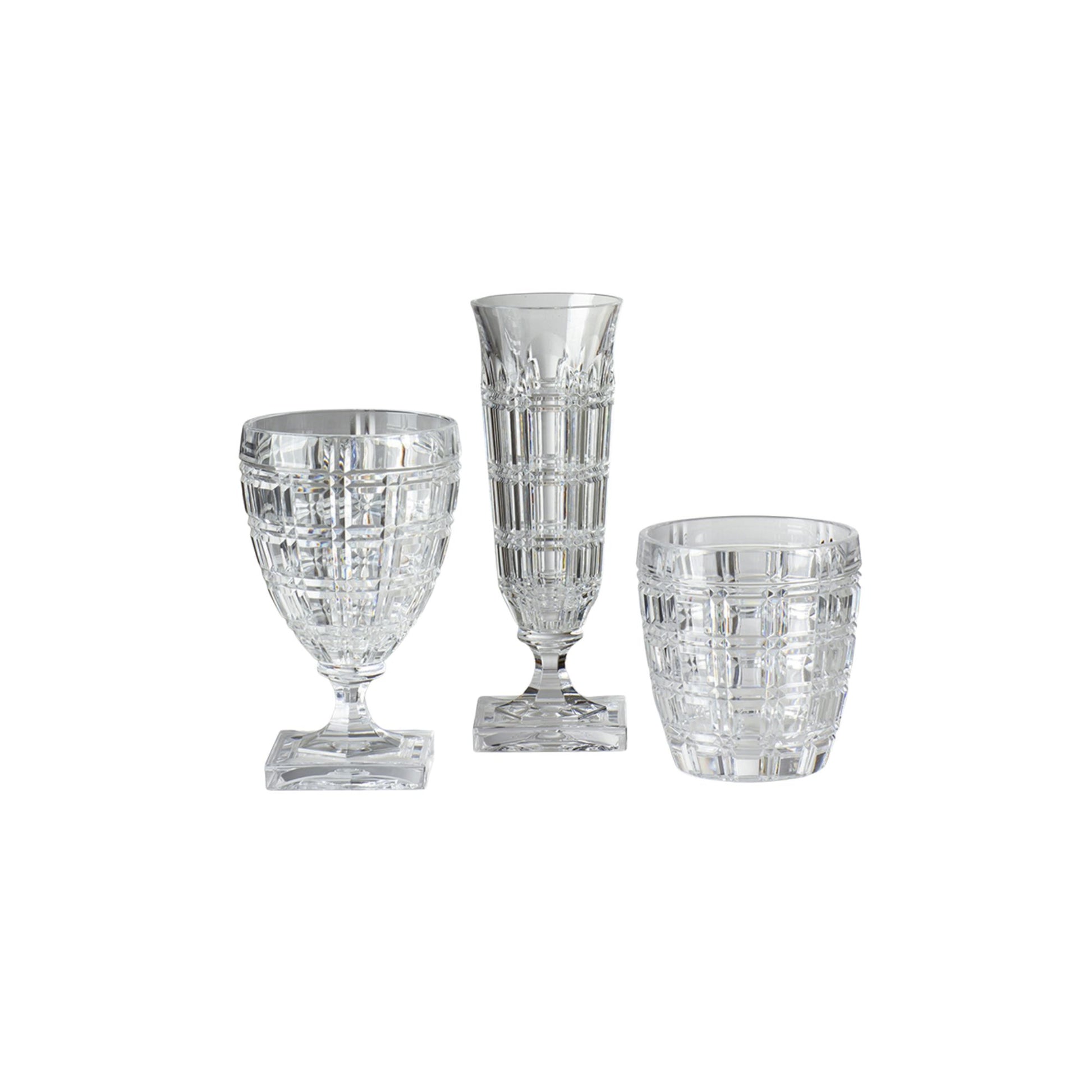 The set contains two water glasses, two wine glasses, and two flutes