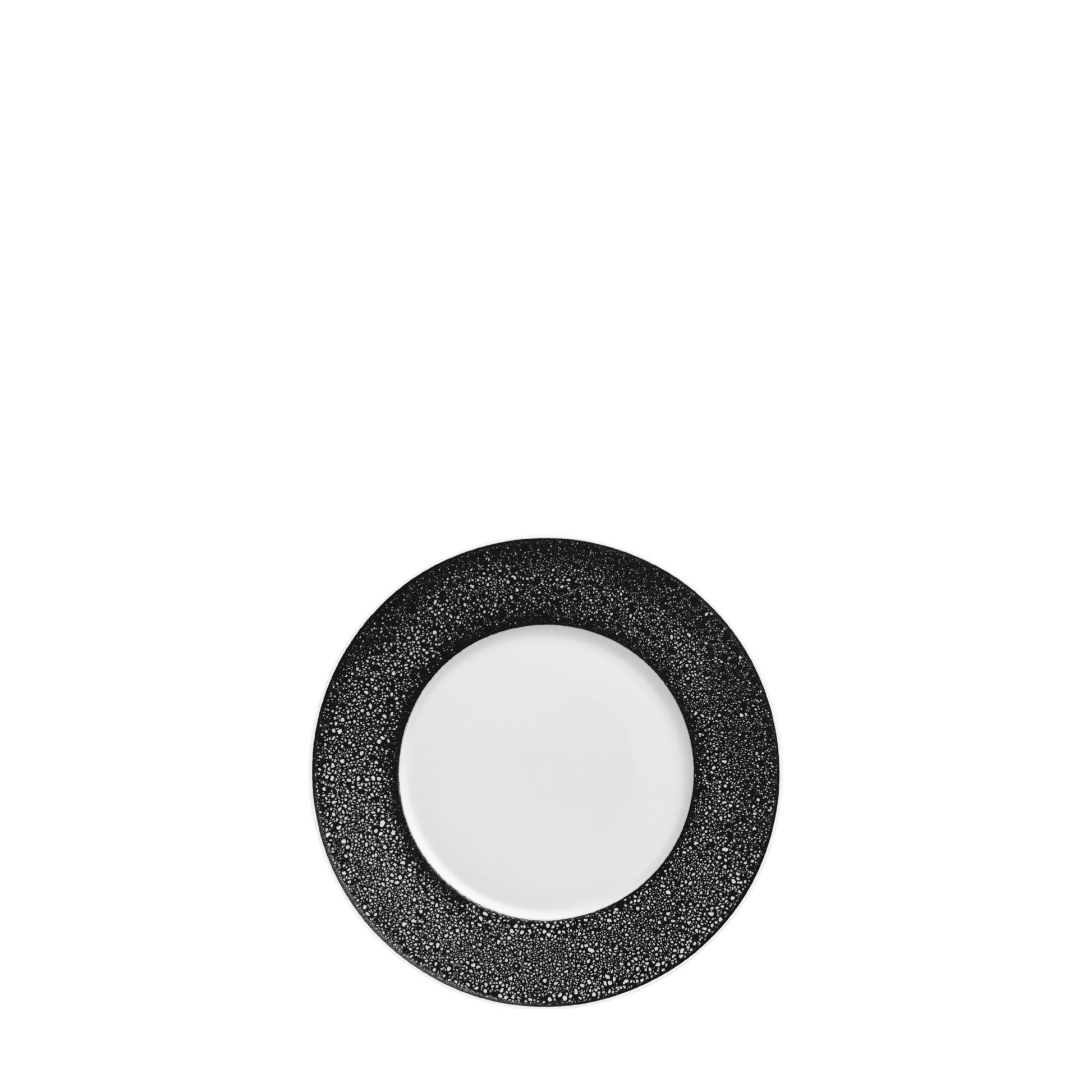 The feel and appearance of the ZIGRINO decor form a surprising contrast to the simple FÜRSTENBERG basic shape and the accentuated curve of the CARLO shape. The unique structure of the flag of plates and platters is created when the special varnish applied tears during the firing process due to tension between the decor and the porcelain.